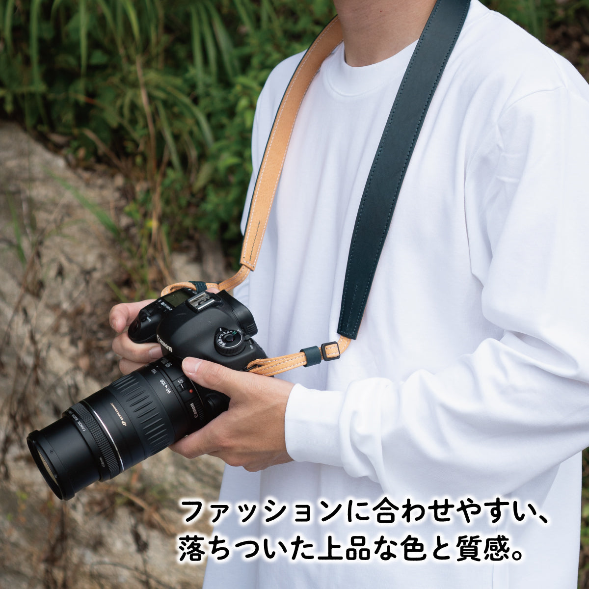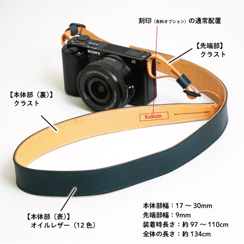 柔らかいイタリアンレザーを贅沢に使用した、Camerabbitの定番カメラストラップ。