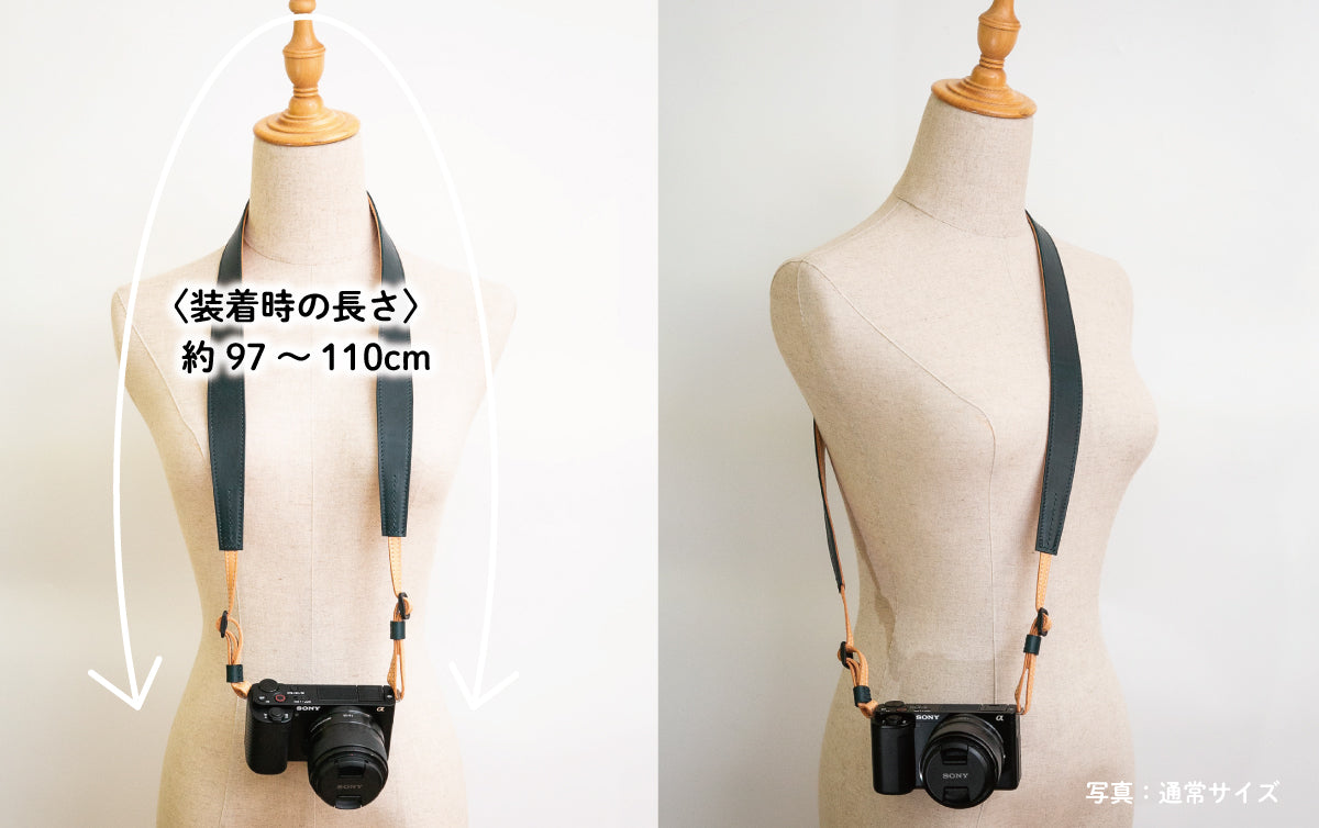 首元にかけて幅が広くなっており、中型~大型のカメラ向けです。
